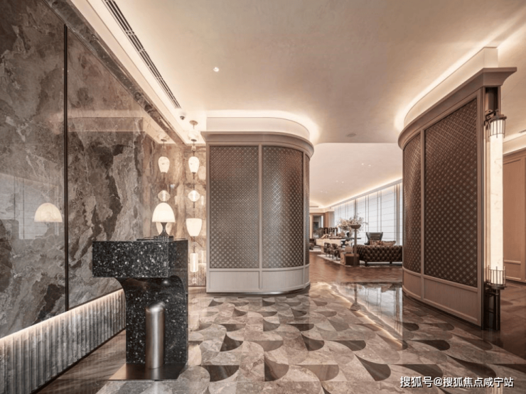在社区大门方面,招商“揉石成缎”,用大量石材,通过水刀雕刻、手工打磨、高精度抛光等复杂工艺,塑造了独特的归家仪式感。