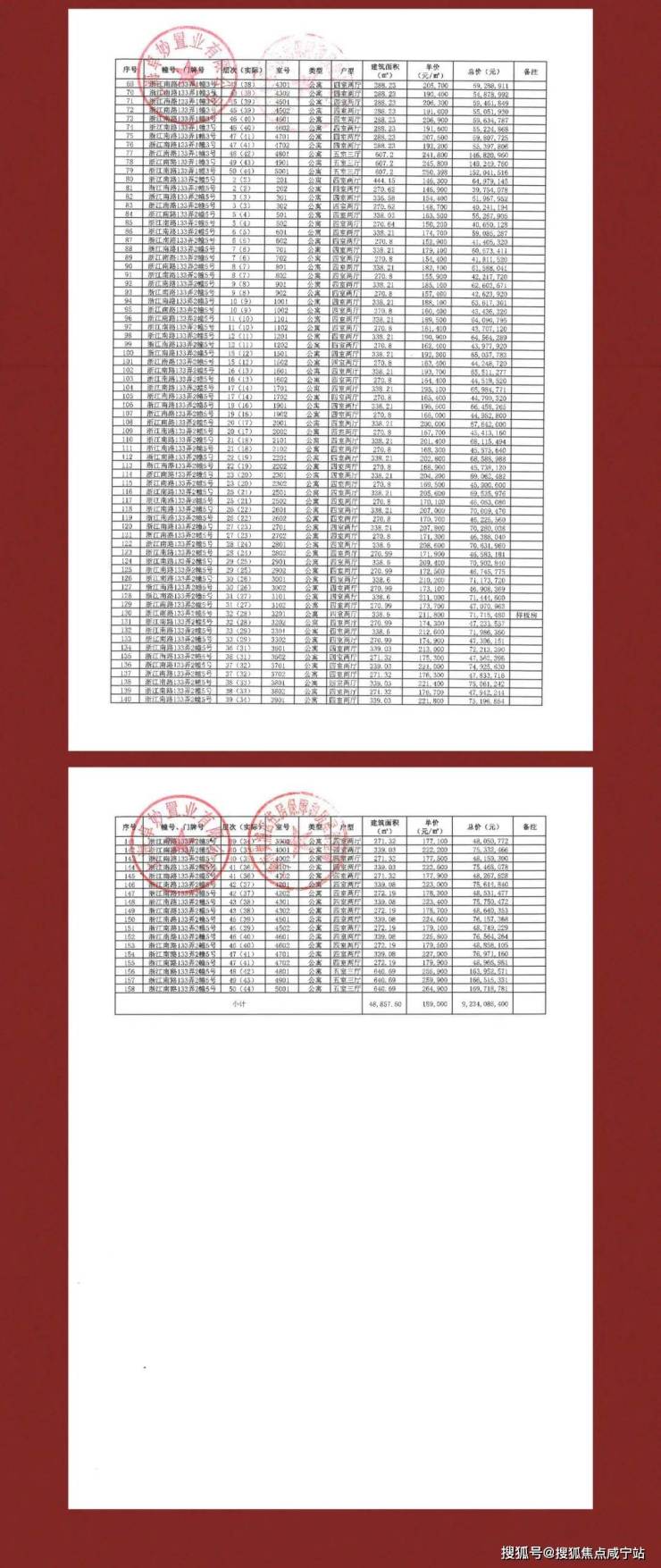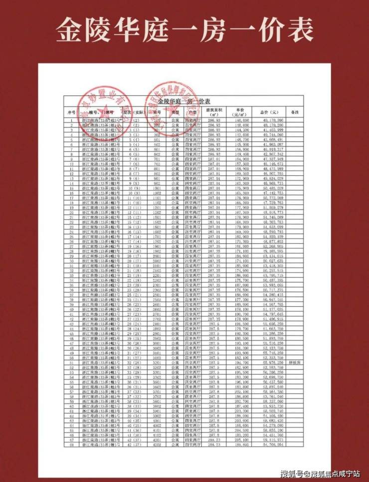 上期一房一价表如下: