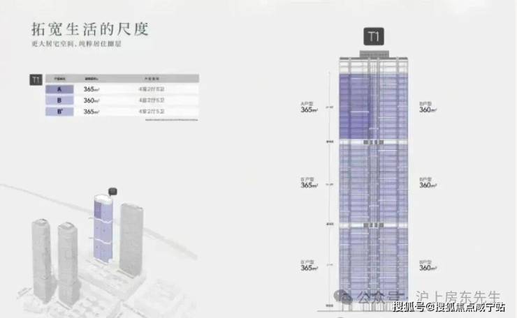 项目住宅为4栋约150m超高层塔楼,一层两户,每户都拥有270°环幕视野,与楼下的风貌群落,形成新与旧的融合,再造城市第五立面,尽览陆家嘴、外滩、黄浦的盛世美景。