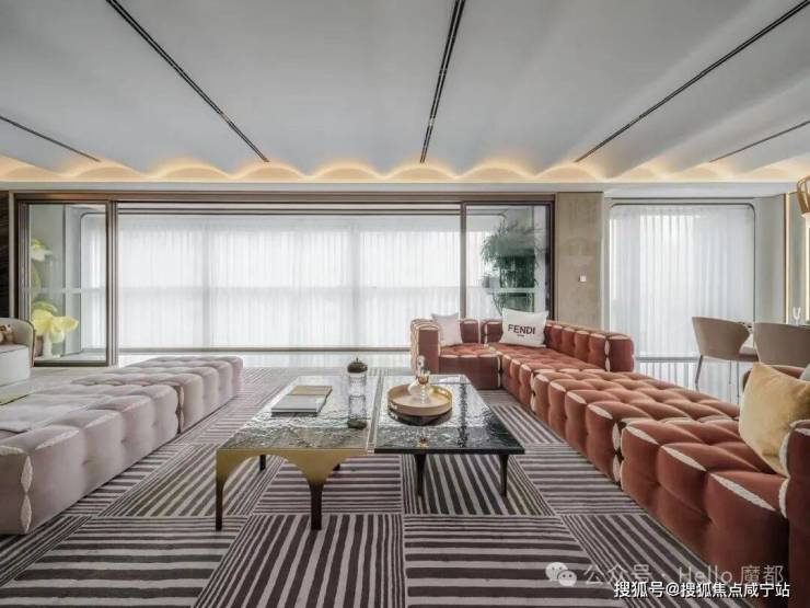 温暖舒适的面料造就了空间温情的一幕,金属是这个空间的常见材质,在现代都市中代表着冷峻的表面,而在家庭厅,绿植、曲线、面料中则描绘了生活小家的场景,在光线的映射下,更显得温情融容,实现了空间与人的情感链接。