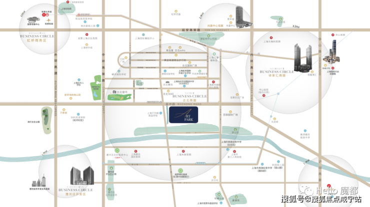 3公里左右可以快速到达爱琴海购物中心、万象城购物中心、徐家汇商圈的恒隆、ITC等。