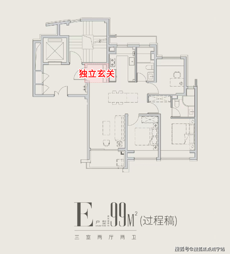 全飘窗设计,将内外景观视野最大化,同时提高了空间利用率。其中,建面约 99 - 103㎡的三房,三开间朝南,全屋六飘窗,独立玄关,空间布局巧妙;