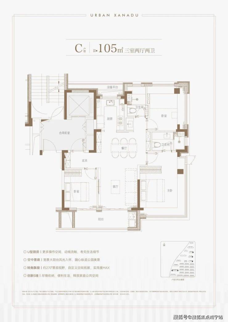 立面是浅香槟金铝板搭配玻璃,颜值非常高,特色刀锋斜框凌厉简约,最薄的地方可以仅约1CM,精英感满满。