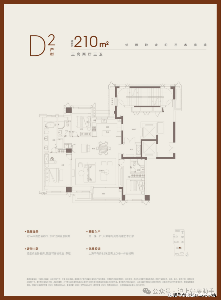 【3#210㎡户型】——南向俯瞰下沉式庭院,北侧私藏浮光池院。