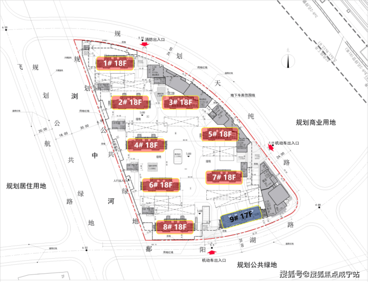 普通商品房用地,用地面积约39769㎡,容积率2.2,限高60米;据规划显示,规划12栋可售住宅,总高17-18层,总户数约901套,容积率2.2,非人车分流,车位比约1:1.2。