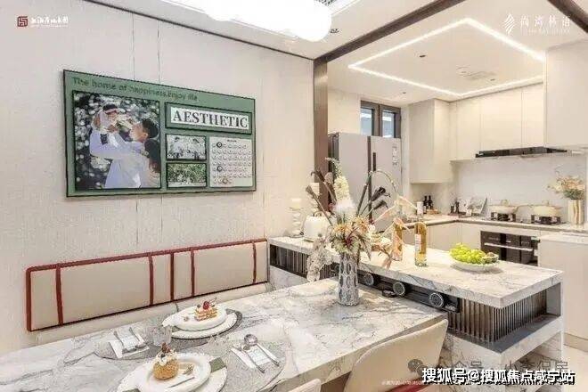 同级户型餐厅位只能放置四人桌,而该户型能放下六人桌,大家庭聚餐其乐融融。