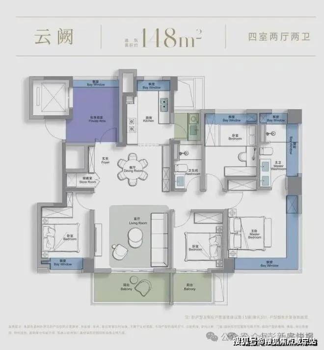 建面约148㎡户型则以更恢弘的尺度重新定义改善型住宅的天花板