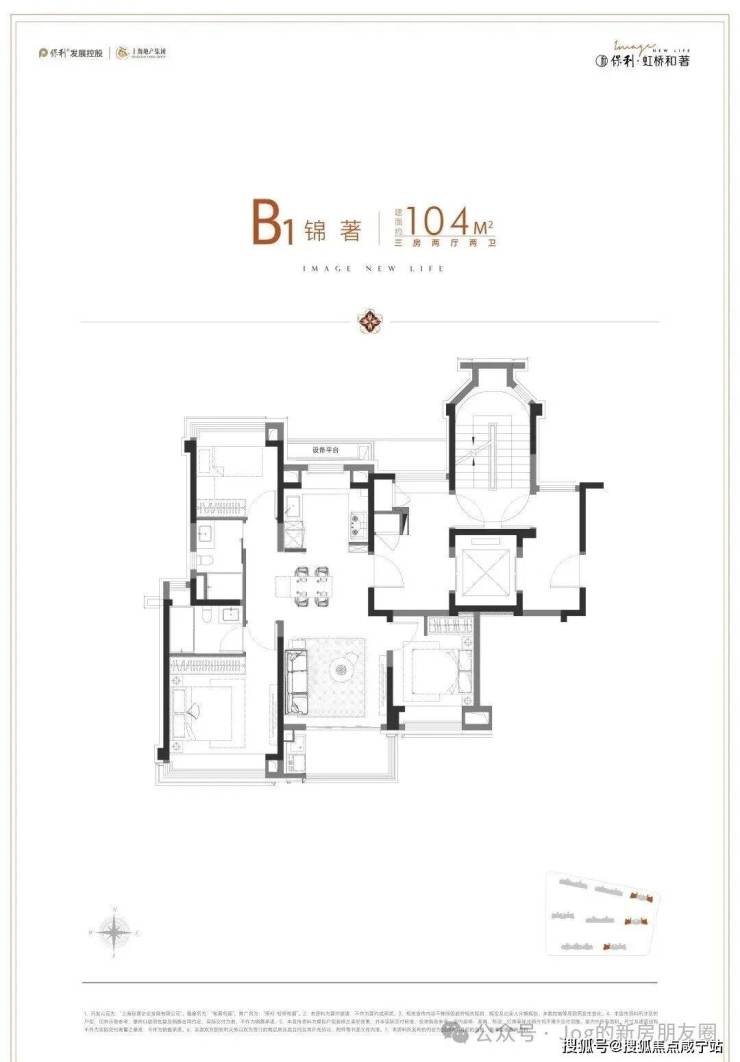 先说户型:如果你熟悉上海市场,你会发现目前市面上的户型普遍会面临:利用率低、收纳空间少、有连廊、卫生间少/功能性差、卧室太小不够等问题。但保利虹桥和著的建面约104㎡3房2卫,却很好的解决了以上所有问题: