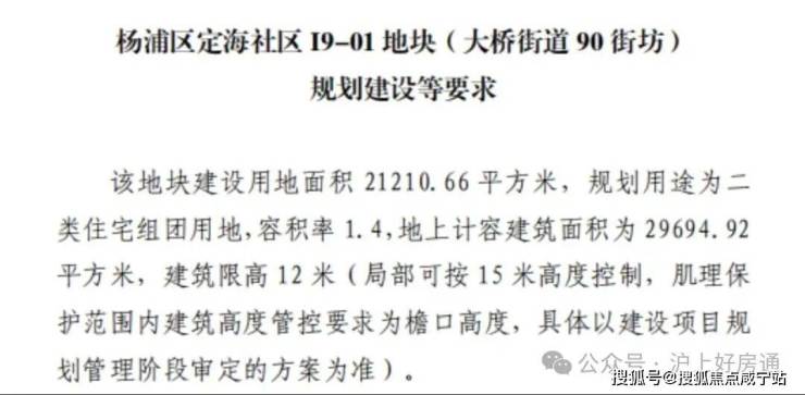 8月1日,杨浦滨江又传重大利好!根据杨浦规资局官网,杨浦区定海社区I9-01地块(大桥街道90街坊)历史风貌保护项目协议拟出让结果公示,中建壹品投资发展有限公司为意向用地者。中建壹品外滩源著售楼处电话:400-8800-703☎️☎️