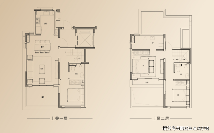 上叠129㎡: 40㎡星空露台+双南向阳台,迭代传统叠墅空间逻辑;