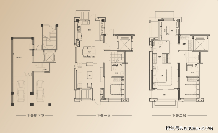 下叠165㎡: 独立花园+地下室(可改影音室/酒窖)+双套房设计,一层预留老人房;