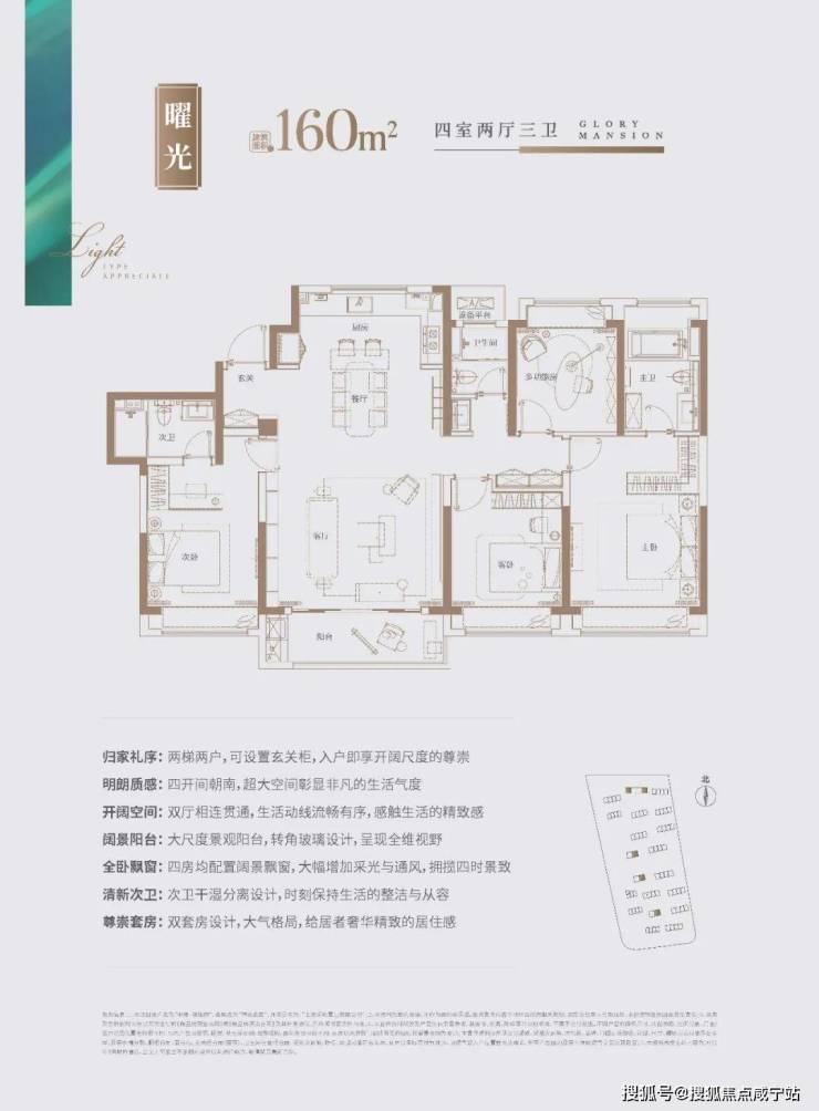 中建海樾府约160平4房2厅3卫,则是进一步将奢阔体现的淋漓尽致,无论从面积尺度还是功能设计上都算是一个大平层了。
