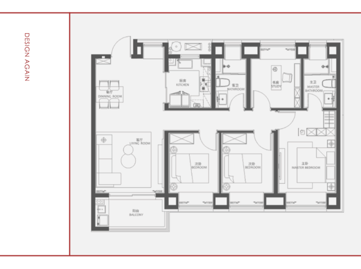 130㎡四房两厅三卫:三代同堂专属户型,双套房设计保障隐私;145㎡升级三卫,社交空间与居住尺度兼得。