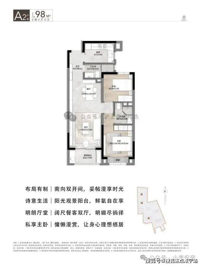 其中,建面约98㎡爆款户型,餐客厅一体化,连贯阔朗阳台,融合多维生活场景,实用性极强;双卧空间较为均衡,酒店式主卧带独立卫浴、观景飘窗;次卧空间宽适,可定制各类功能,适合单身、新婚、小太阳各家庭阶段……相比同面积段户型,以更舒适的空间尺度提升居住体验。
