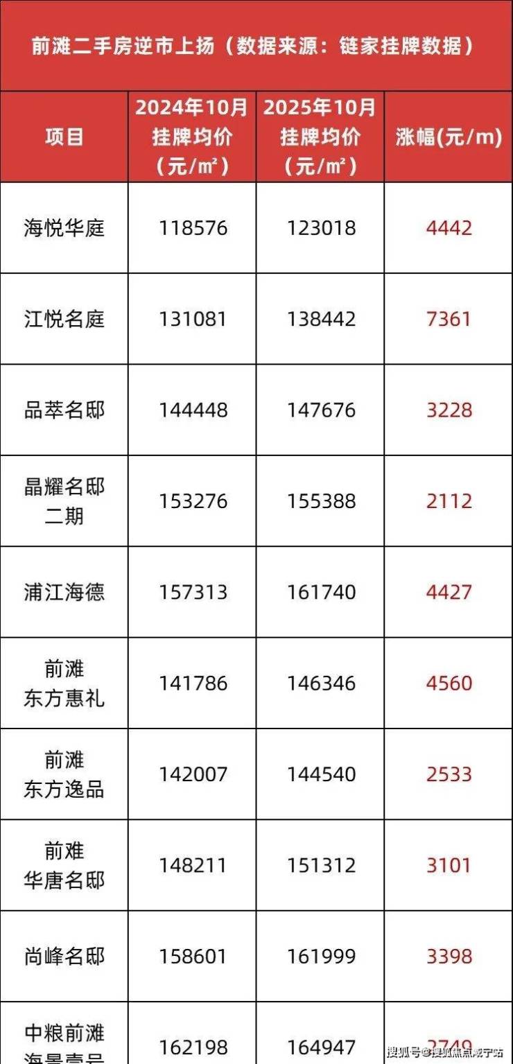 前滩滨江,正持续吸引全球眼光与资本,高净值人群正以实际行动在此“投票”。在2025年,整个前滩滨江范围里,二手房逆势上扬,数据显示,成交量已经突破200套,仅次于2020年最高点!就在11月,前滩东方逸品成交1套房源,成交单价来到了14.14万,同比上涨!