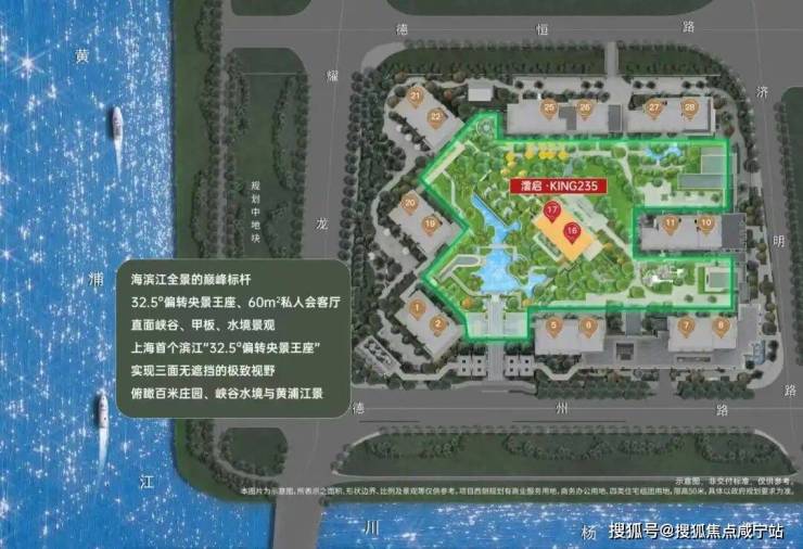 项目踞守距黄浦江仅约300米的头排正席,占据“最后一湾、最正一心、最强一线”的绝版地段。临江楼栋特意向西偏转32.5°,将原本约400米的沿江界面延展成纵深2公里的瞰江长卷,中高区业主可拥享270°无界视野——徐汇滨江的霓虹、世博公园的绿意、陆家嘴的城市天际线尽收眼底。