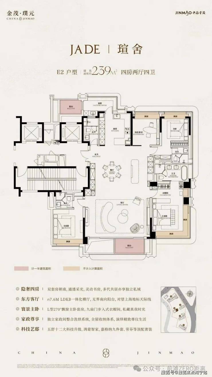 在建面约172㎡户型中,我们可以看到金茂对“三代同堂”生活方式的深刻理解!