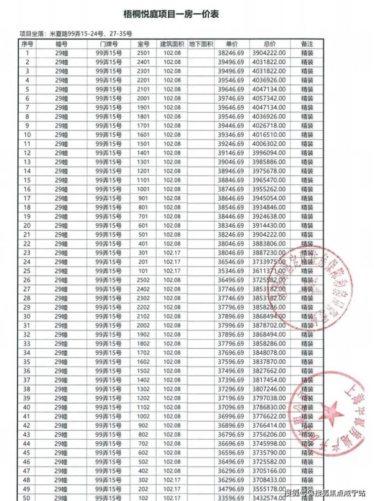 一房一价表