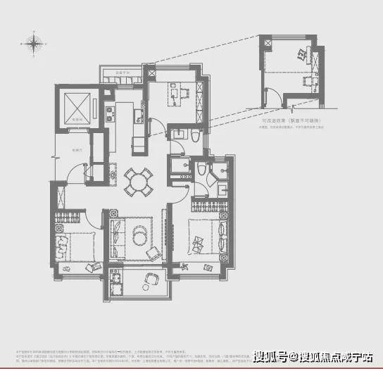 套房主卧配置独立卫生间,是致敬主人的尊崇私享。北向灵动X空间既可以作为家里的书房,也可以按照需求随心改造。