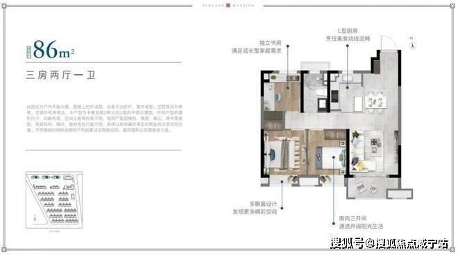 建面约86㎡3房2厅1卫 ▼