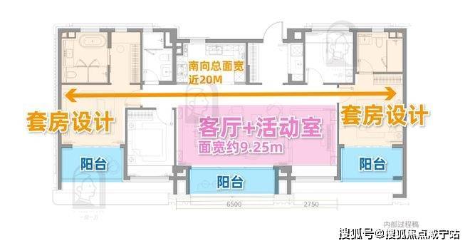 户型采用飞机户型布局,三开间朝南叠加南向双阳台,实现舒适性与实用性的双重升级。