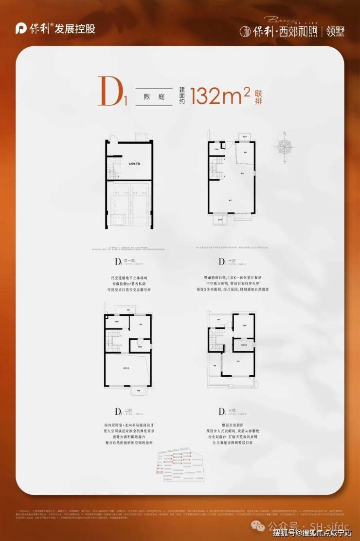 联排艺墅:132-195 ㎡,地上三层+地下一层,面宽 7.8-9 m,花园 40-120 ㎡,总价 900-1 300 万;