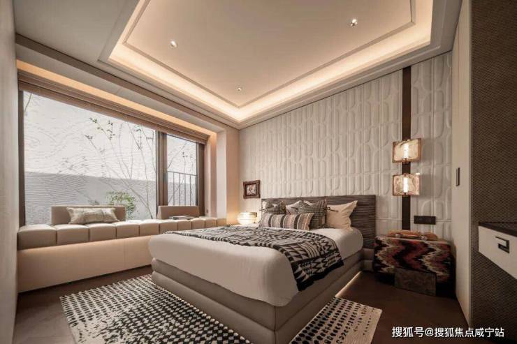 面积达40㎡的主卧,7米超大面宽,南向飘窗延伸灵动空间感。独立衣帽间串联主卫与休憩区,观景浴缸为顶奢豪宅标配。
