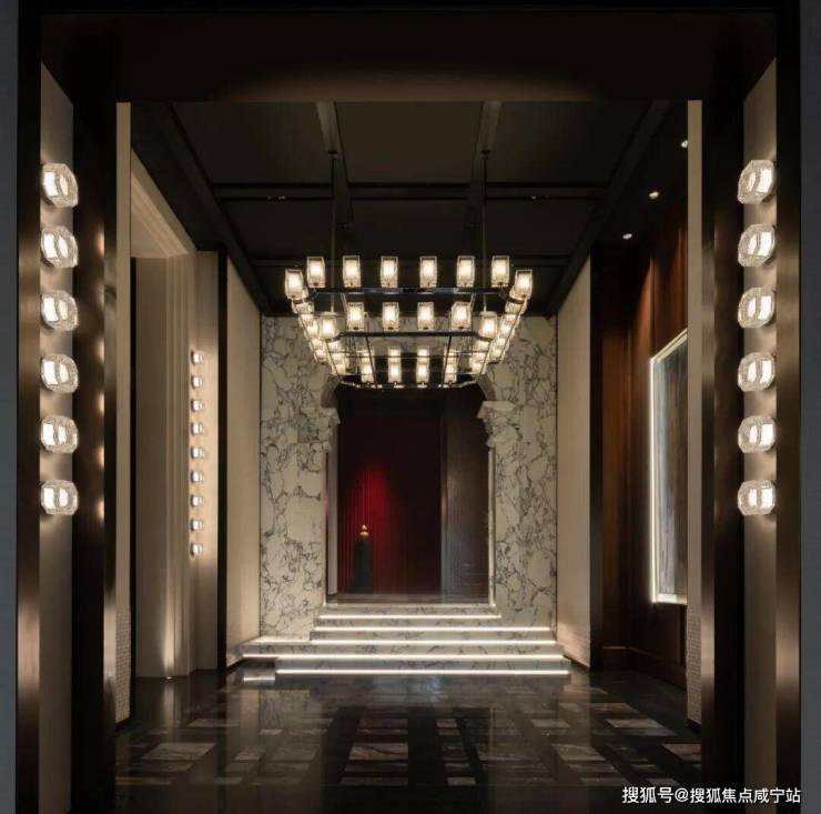 室内空间墙体几乎全部采用木饰面或石材包裹,繁复多层次的线条设计,刻画尊贵空间轮廓。