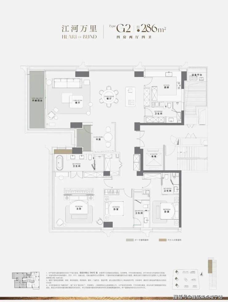 户型方面,建面约230-285㎡「环幕江景舱」,以270°无界平层结构,配合3.3米层高(部分)和全景落地窗,实现上海滨江市场罕见的IMAX环幕江景视野。而且滨江大户型采用颠覆性设计,让户型灵活可变,适配高定人生!