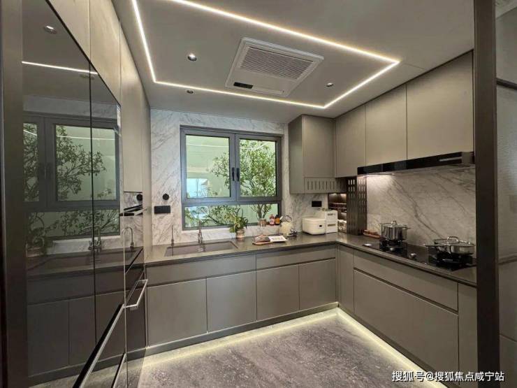 厨电采用的是全套博世——双开门冰箱、油烟机、燃气灶、洗碗机、蒸烤一体机、暖碟机。还有3M末端直饮水,弗兰卡水槽+龙头,特别是这个大金厨房空调,厨房专用的防油烟的款,造价比寻常空调更贵。