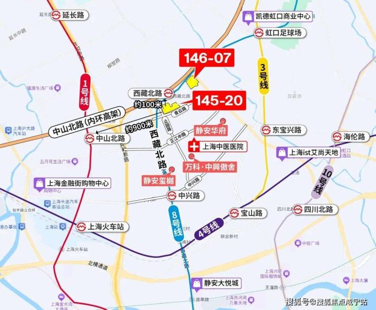 1公里范围内有静安大悦城、万象天地、凯德虹口商业中心、百万中兴城商业(在建中)、珠江安康苑的商业合生汇(在建中)等大型商场。