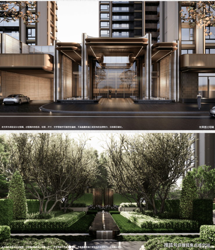 项目打造现代海派风格的外立面,线条简洁大气; 社区规划六重生活体验空间,从酒店式落客入口、镜面水庭到美学花园,旨在将高端酒店的奢享基因融入日常生活。