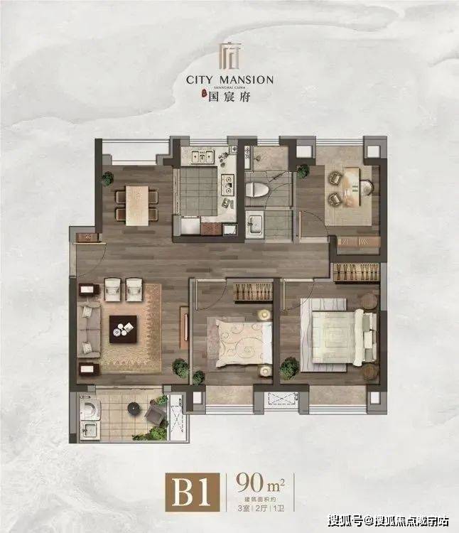建面90㎡3房2厅1卫