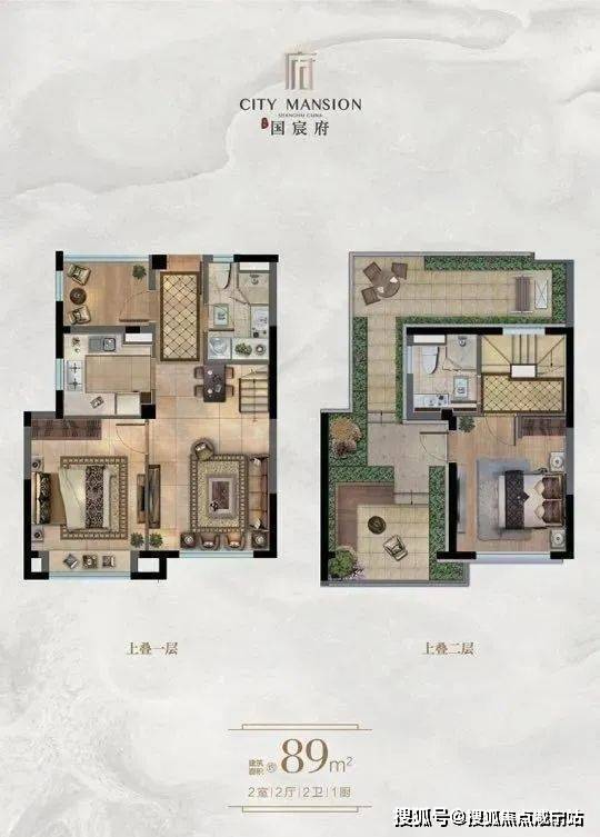 建面89㎡上叠2房2厅2卫