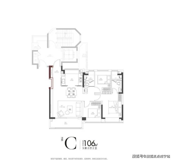 2、建面约108㎡3房(小高层)——打造实用且更有温度的“家庭生活中心”
