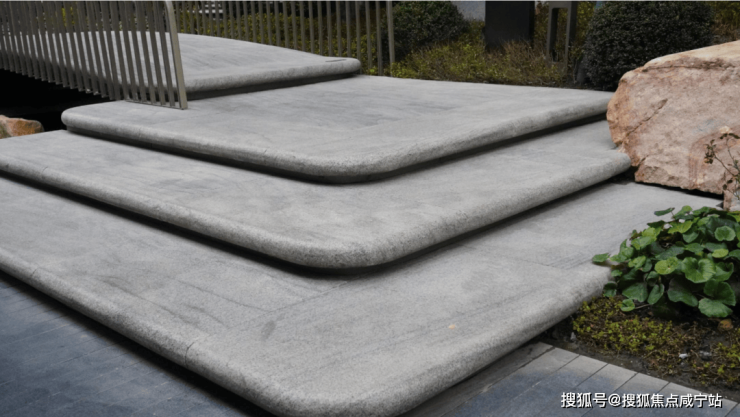 弧线在这款产品被运用到很多地方:弧形叠水、阶梯、阳台以及立面的造型