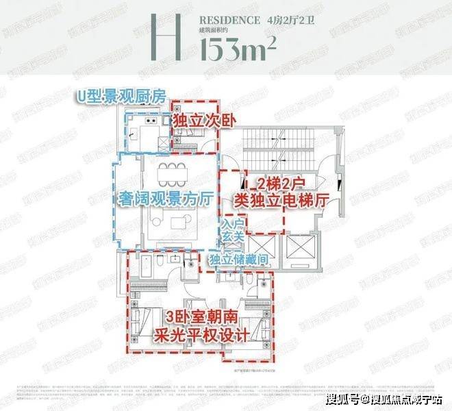 两梯两户配置,尊享类独立电梯厅、入户玄关与独立储藏间彰显居者气度。