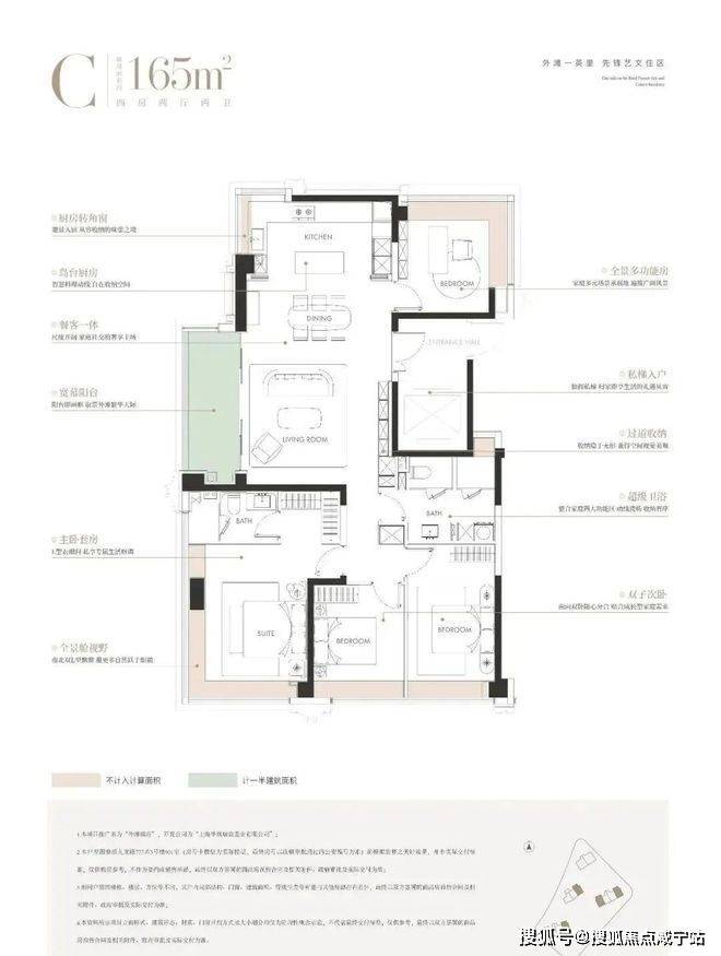 建面约161㎡的奢享四房,则是对改善需求的深刻洞察。其设计更是颠覆性的:全屋四个转角窗构建外滩天际环幕视野,三卧朝南且近乎等面宽的“真四房”设计,实现了家庭成员间的景观平权与舒适平权。酒店式四分离次卫与独立家政空间的设计,更是对生活细节的极致考量。