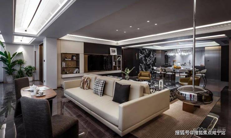 抛开传统住宅的空间桎梏,231㎡寰幕平墅以超越性尺度,放大布局的可变性与享受的自由度,于细节处渲染云端人物向往的豪宅生活语境,继而让空间的本意回归居者。