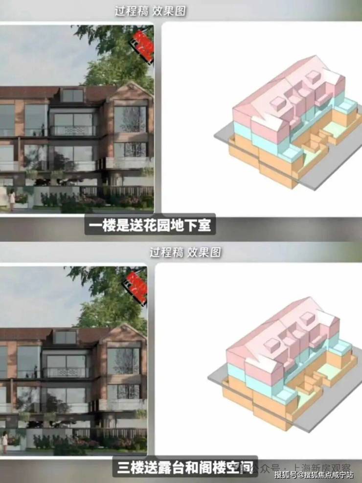 赠送率极高:首层私家花园、地下室、采光花园全赠送;二层大面积阳台露台赠送;三层大尺寸露台赠送,并带有闷顶。