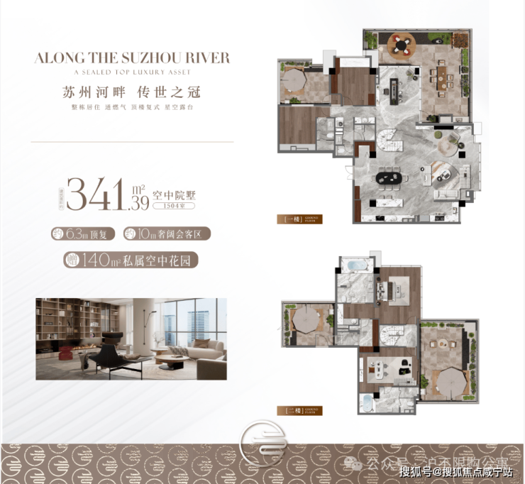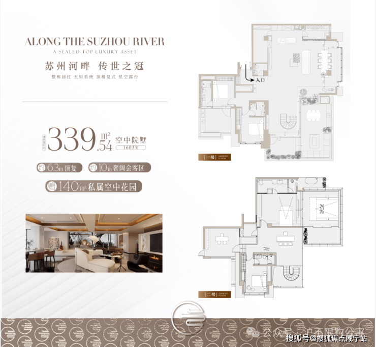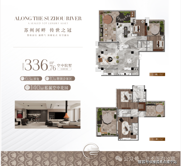 普陀长风公园整栋居住 送4个露台【云境 ·长风】面积336-341平空中小别墅挑高6米复式,通燃气 地暖 新风系统,小区绿化率45%