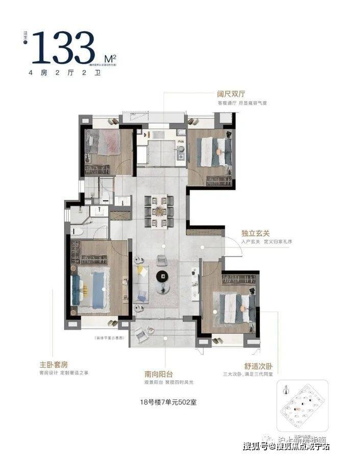 建面约 128㎡大三房更是 “超值之选”。6.2 米横厅 + 3.8 米进深的公共空间,可同时容纳 10 人聚餐;主卧套房配备步入式衣帽间和双台盆卫浴,北向书房可改造成电竞室或琴房。全屋飘窗、设备平台等赠送面积约 8㎡,相当于多赚一间儿童房。按均价计算,这些 “额外空间” 价值近 27 万,相当于开发商 “白送” 10 年物业费。