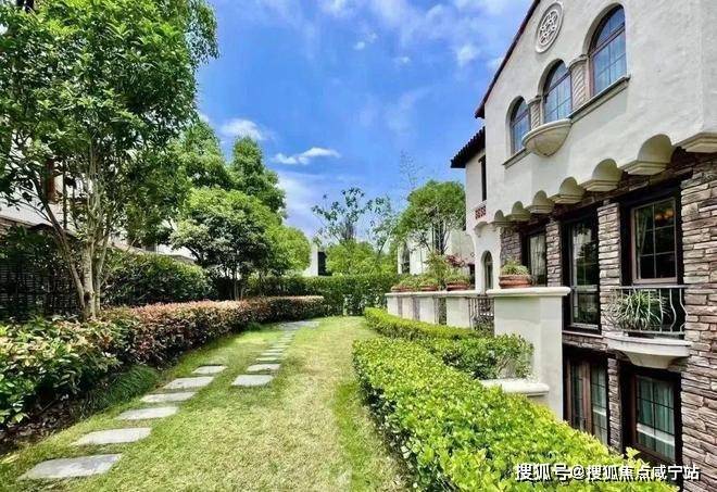 项目北、西两面紧邻天然河道泗泾塘,南临古楼公路,形成三面环河的独特格局,是上海唯一三面临河的纯独栋别墅社区。开发商引入泾泗塘活水入园,打造亲水步道、叠水景观与多层次园林,结合原木、红砖、铁艺等南加州风格元素,营造出“一步一景、步移景异”的沉浸式体验。社区内植被覆盖率超70%,四季常青的草木与蜿蜒的水系相映成趣,既满足高端客群对自然生态的追求,又契合东方居住美学中“天人合一”的哲学理念。