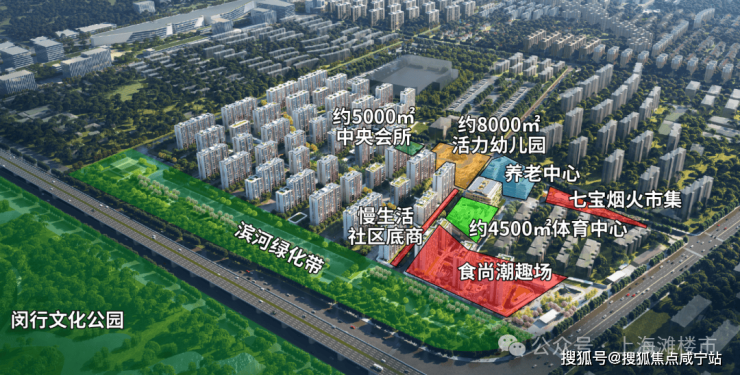 项目位于中外环间“六边形战士”七宝板块,北面大虹桥,南面莘庄,同时项目是9号线星中路地铁上盖大盘,2站漕河泾开发区,5站徐家汇,这些高势能板块为七宝提供了源源不断的高质量人口;