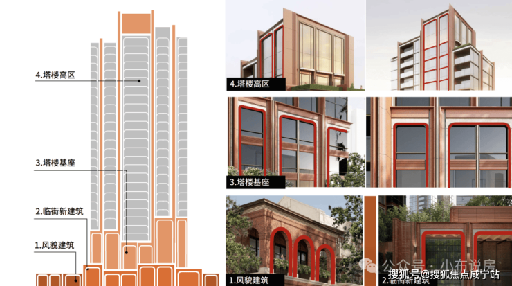 "三段式"设计:底部保留石库门风貌,中段采用玻璃幕墙,顶部设计"冠冕"造型。