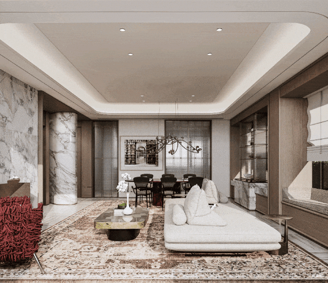 主阳台的大采光面将阳光引入室内,视野优渥,一体化客餐厅带来超大公区空间。
