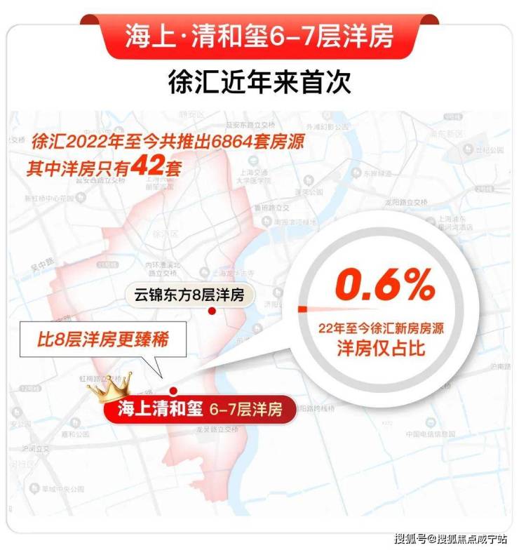 徐汇虽楼市火爆,但洋房供应几乎真空。2022年至今上市6864套新房,其中只有42套8层洋房(来源云锦东方),再往前追溯是2020年尚汇豪庭开了144套8层洋房。