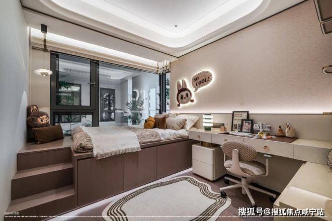 另外采用意大利 “大花白”天然石材实现地墙满铺,双台盆与双镜柜的对称设计复刻五星酒店规制,美妆冰箱精准控温呵护护肤品,奢华至极!