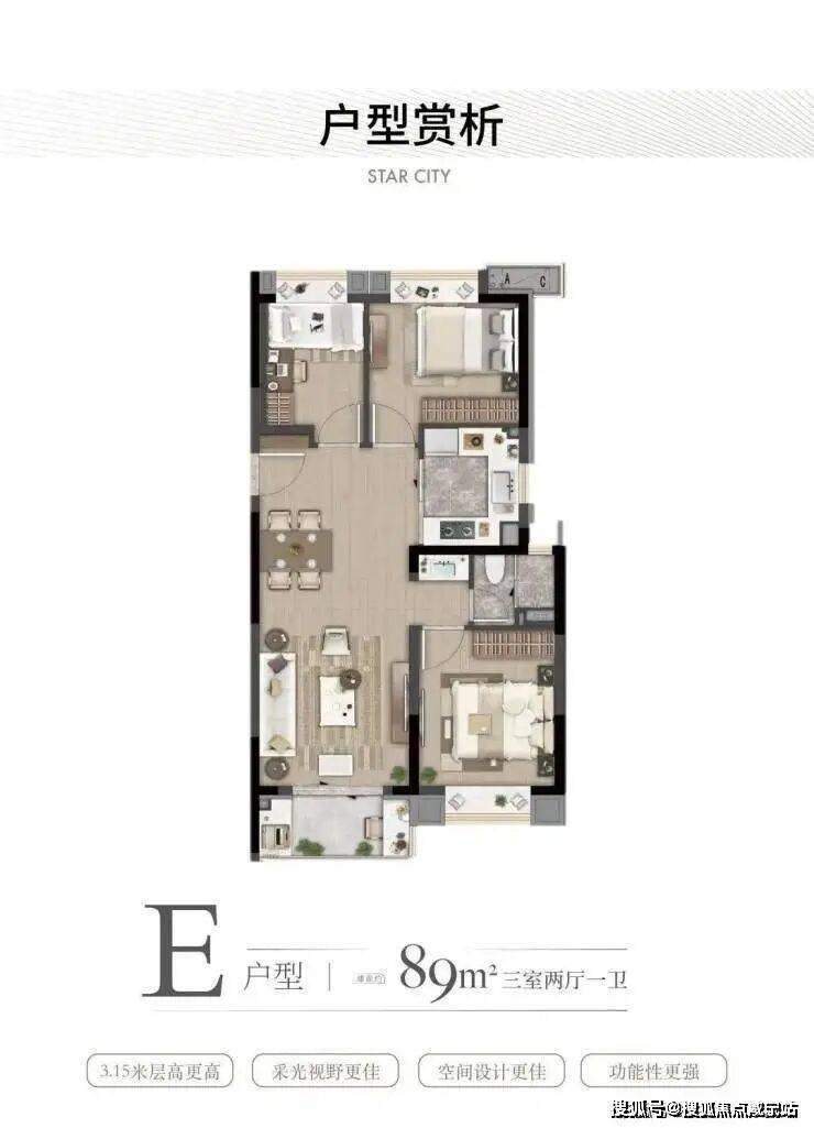 建面约88㎡3房:大虹桥范围不到90㎡的户型大部分都只做到2房,而虹桥灿耀星城该面积段实现3房功能性,让自住客户一步到位,也让该产品进入二手市场后具备降维打击的优势!