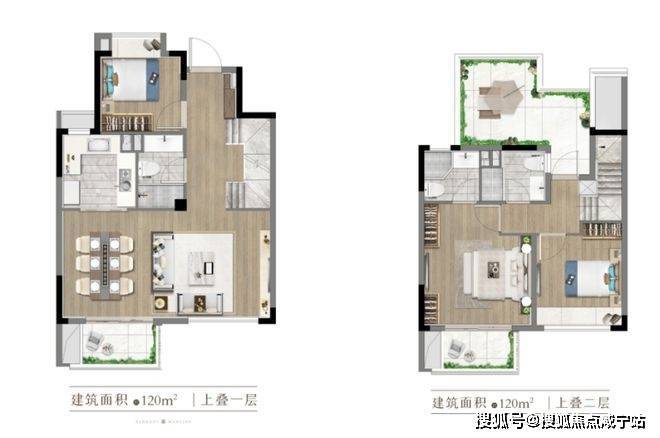 建面约120㎡的上叠户型图▼
